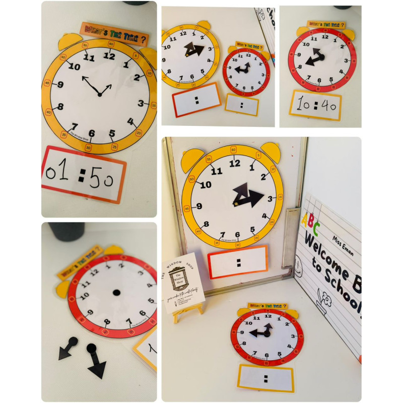 تتميز بمؤشرات الساعة والدقائق الملونة، وأرقام واضحة، وتصميم جذاب يجعل التعلم ممتعًا.