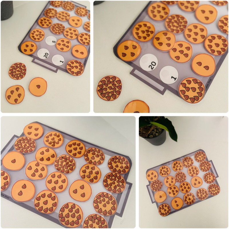 تحتوي على كوكيز ملونة للعد من 1 إلى 20 وللتدرب على مهارات الجمع والطرح، مما يعزز فهم الرياضيات من خلال اللعب.