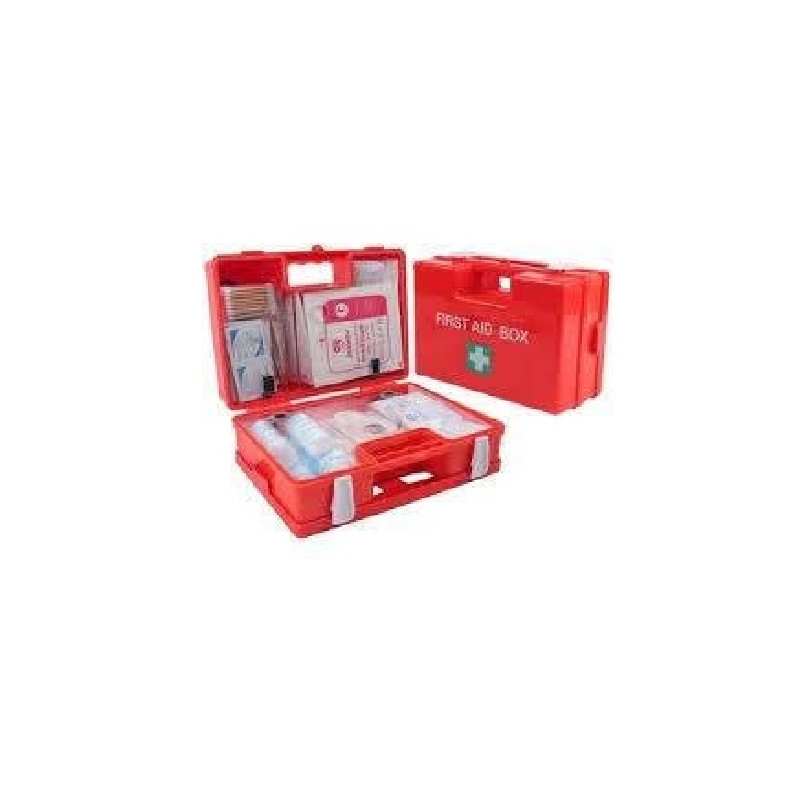 صندوق إسعافات أولية محمول ومدمج يحتوي على مستلزمات طبية أساسية لعلاج الإصابات البسيطة والطوارئ. مناسب للاستخدام في المنزل، المكتب، أو أثناء السفر.