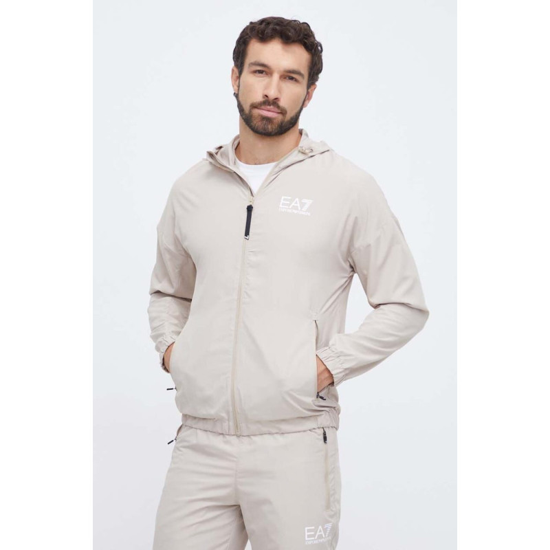 جاكيت EA7 إمبوريو أرماني بلون بيج. خفيف الوزن بغطاء رأس.