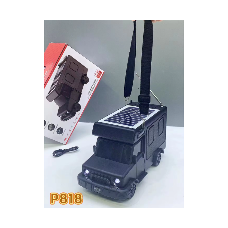 سماعة بلوتوث ( سبيكر ) محمولة قابلة للشحن الشمسي، تدعم كابل AUX/USB/بطاقة TF/راديو FM، على هيئة شاحنة