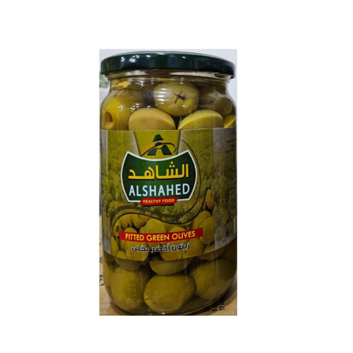 Al-Shahid pitted green olives feature large, flavorful olives with a rich taste.